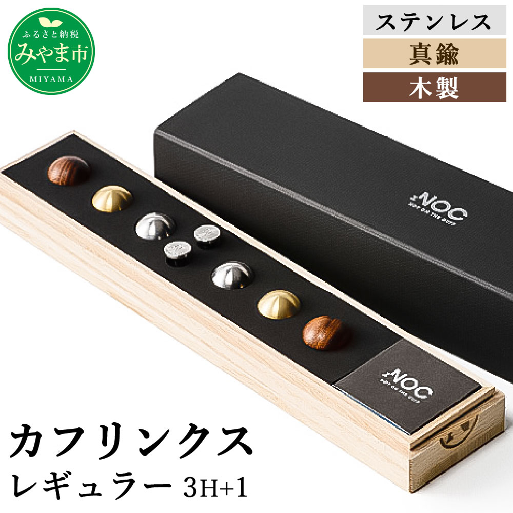 NOC カフリンクス レギュラー 3H+1 ヘッド3種類(ステンレス・真鍮・木製) カフス釦 カフス ネジ式2ピース構造(ヘッド・ベース)