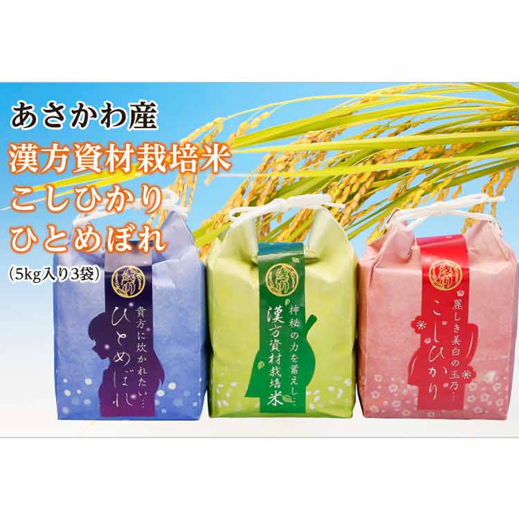 漢方資材栽培米、こしひかり、ひとめぼれの3種のお米セットです。浅川町は豊かな自然環境であり、そこで生産されたお米はとても味が良いとの評判です。漢方資材栽培米(コシヒカリ)は、化学肥料や農薬の代わりに漢方を使用して栽培したお米です。