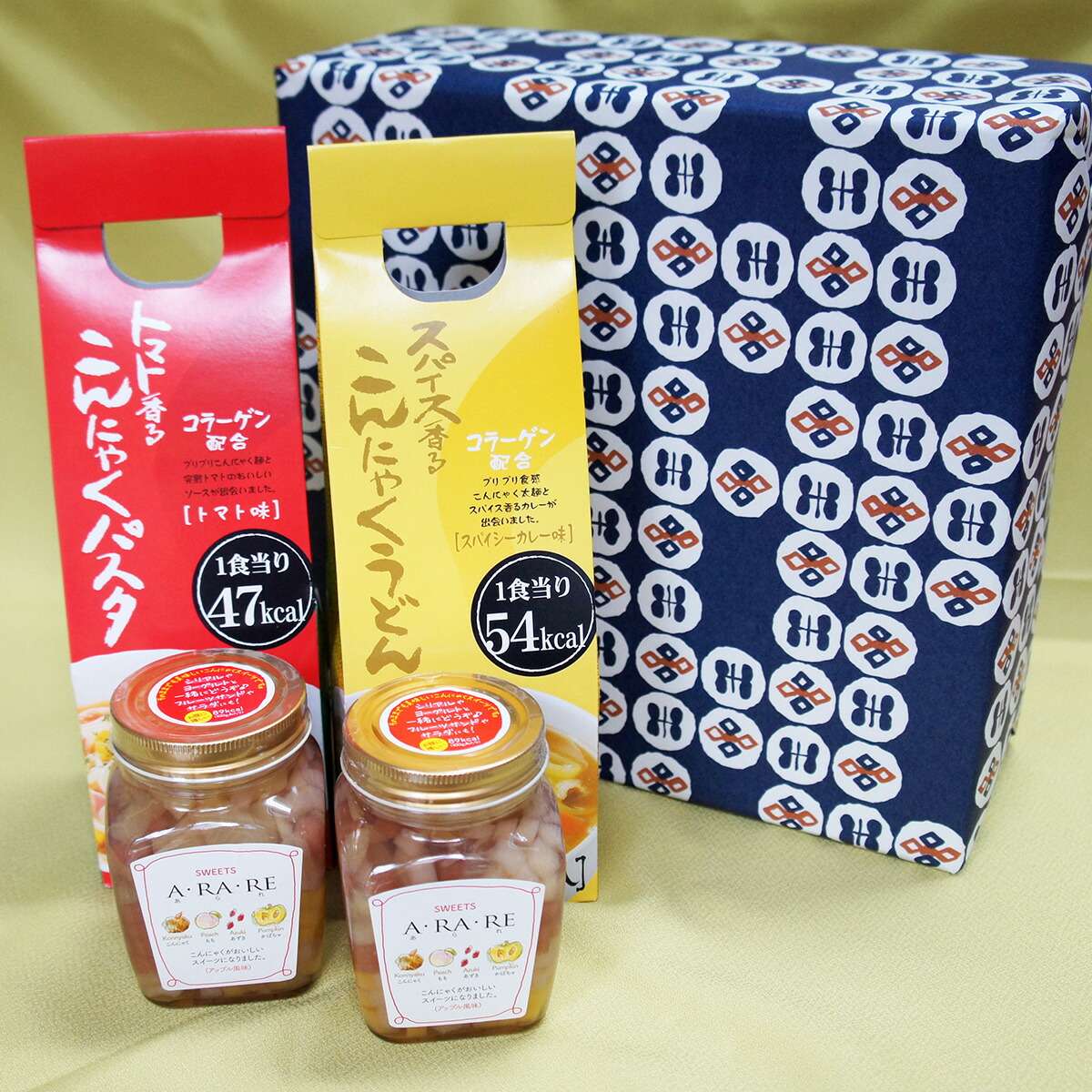 さまざまなこんにゃくを楽しめるバラエティ豊かなこんにゃくセットです。朝食にしてもおやつにしても食べられる商品であり、年代を問わずお楽しみいただけます。ヨーグルトと一緒に食べることもおすすめです。