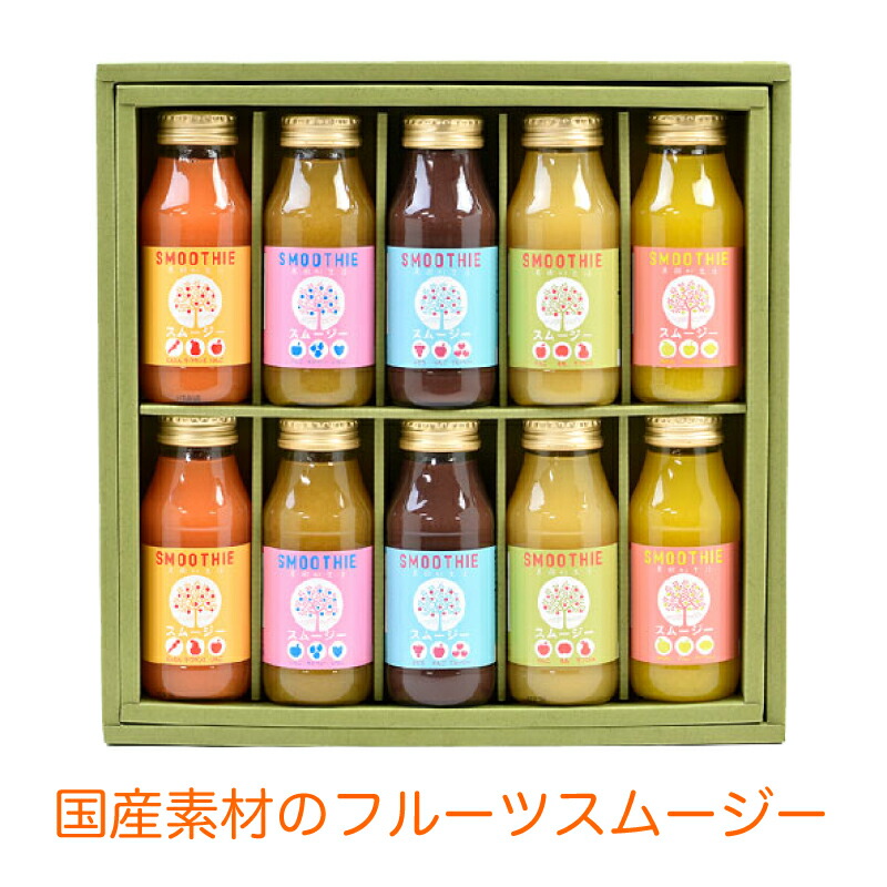 フルーツ本来の味を引きだしたフルーツスムージー10本セットです。国産果実の果汁のみを使ったこだわりのおいしさを堪能してください。