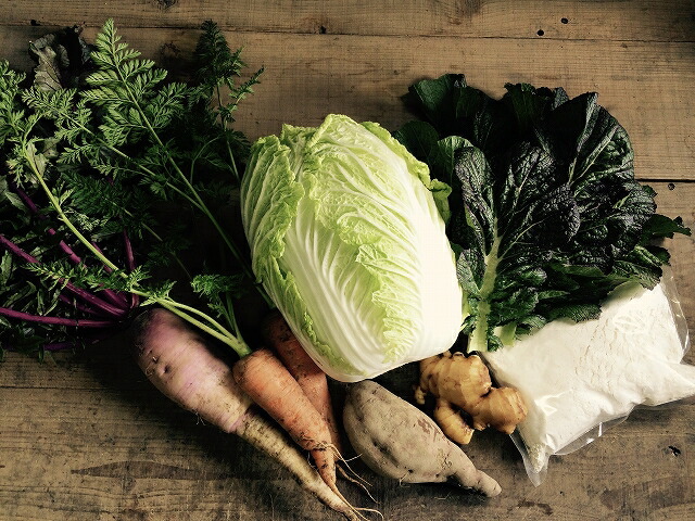 農薬や化学肥料をつかわずに育てた野菜と小麦です。肥料は、有機肥料とミネラルのみ、大地の味がする、お野菜たちです。