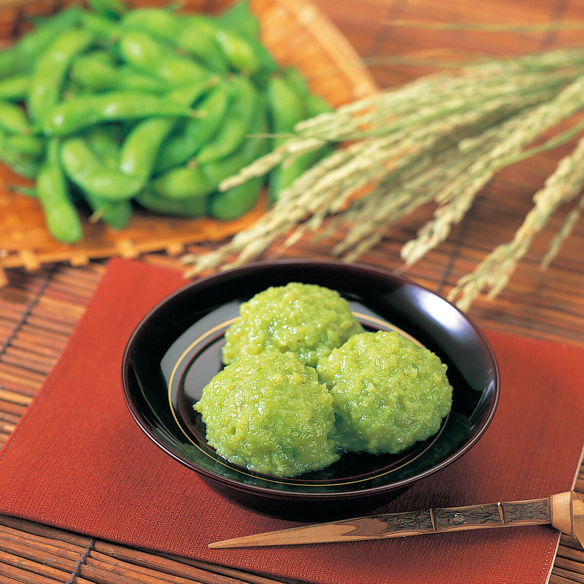 独自配合のブレンドであり、こだわった枝豆を使用しています。深い味わいで香りもとても良いことが自慢です。もち米には「ミヤコガネ」を使用しており、作ってすぐに急速冷凍して味を閉じ込めました。ぜひご賞味ください。