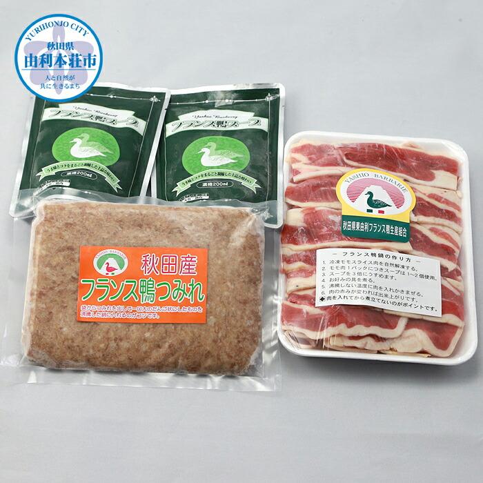 フランス鴨鍋つみれセット(フランス鴨モモ肉スライス270g、フランス鴨つみれ250g、スープ200ml×2)