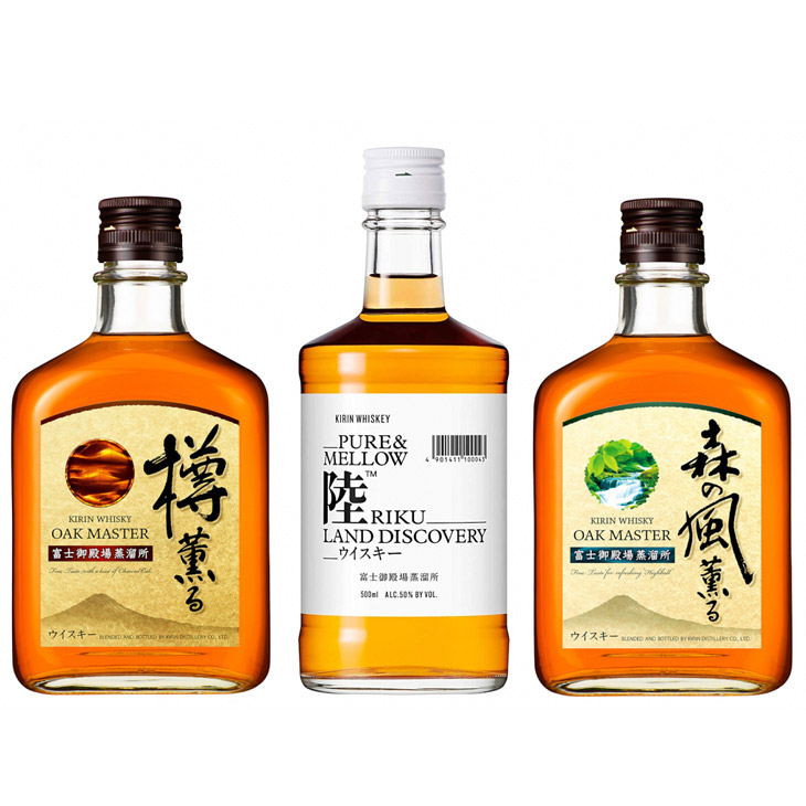 オークマスター樽薫る: モルト、グレーン、スピリッツ アルコール40% オークマスター森の風薫る: モルト、グレーン、スピリッツ アルコール40% PURE & MELLOW 陸: グレーン、モルト、アルコール分50% |